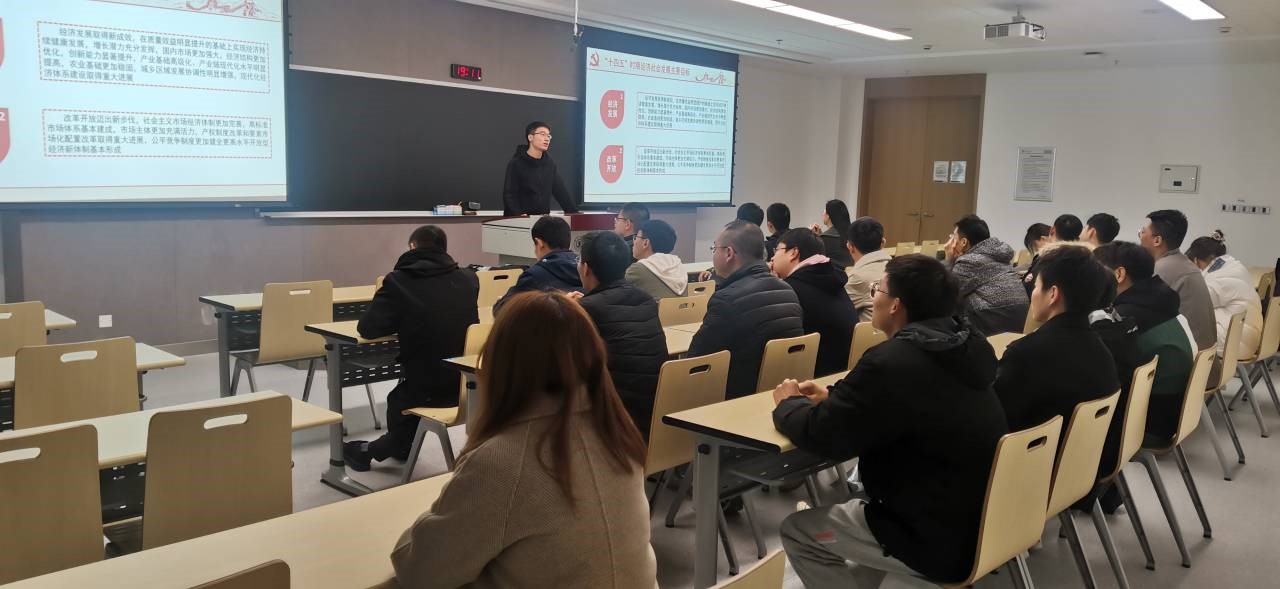 2020年10月29日,中共第十九届中央委员会第五次全会审议通过了《中共中央关于制定国民经济和社会发展第十四个五年规划和二〇三五年远景目标的建议》。为加强理论建设和政治建设,贯彻落实习近平新时代中国特色社会主义思想,机械硕9010党支部于11月21日召开主题学习研讨会,对“十四五”规划以及“2035远景目标”进行了深入学习与讨论。会议内容由支部成员吴浩宇同志主讲,对“十四五”规划以及“2035远景目标”的起草过程、指导思想、主要目标以及重要意义进行了详细介绍。党支部全体党员和部分积极分子参加学习。