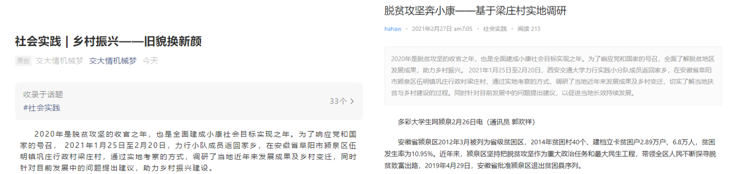 同时支部成员向各类媒体积极投稿,分享调研成果,现已在各类媒体上发表新闻稿10余篇,包括西安交大社会实践公众号,交大情机械梦,多彩大学生网等。