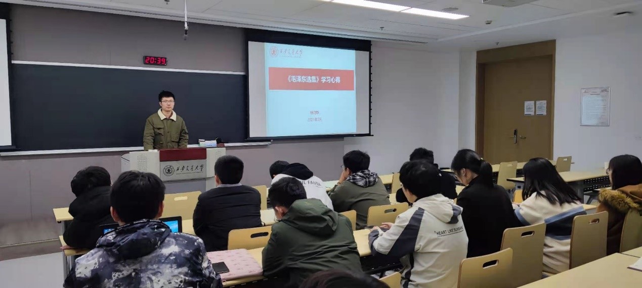 寒假期间,硕0006支部成员对“四史”推荐书籍进行了学习,并于开学前提交了学习心得。本次组织生活会,杨诗麒同志分享了《毛泽东选集》的学习心得,他首先介绍了《毛泽东选集》的内容,包括了毛泽东同志在中国革命各个时期中的重要著作,其顺序是按照中国共产党成立后所经历的各个历史时期及著作年月次序编辑的。随后杨诗麒同志分享了毛泽东同志的人生经历和自己的学习感悟。