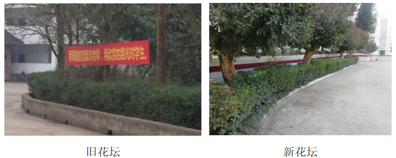 经过近十年的发展,特别是义务教育均衡发展后,校容校貌发生了翻天覆地的变化。如今进入校门绕过长城屏风,抬眼望去便可见两栋教学楼并排而立,教师宿舍楼和综合楼呈列其左右,行政办公楼与教学楼矗立相望。校门口有文化长廊,展示了师生风采,校园文化引人入胜,既有古人孔子塑像,又有当代教育家陶行知塑像,还有各类文化展板。这些文化建设给学校营造了浓浓的书香氛围。校园内宽大平整的水泥操场上一尘不染,一改过去尘土飞扬的落后面貌。操场四周花团锦簇,百花争艳,绿树成荫,为孩子们提供了一片绿色天地。