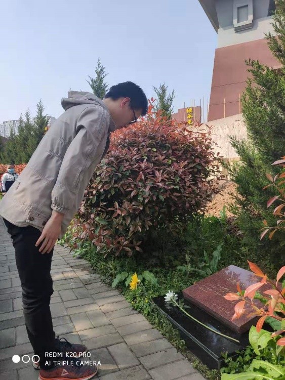 随后,党支部书记薛成代表支部全体致辞。他表示,回望我们党走过的百年征程,正是无数革命先烈以铮铮铁骨、血肉之躯,才撑起了中华民族的脊梁,铺就了复兴之路的基石。不管时代如何变迁,先烈们舍生忘死、为他人谋幸福的高尚品德不应被遗忘,他们的革命精神万古长青。他希望同志们能继承先烈精神,坚守初心使命,自觉践行社会主义核心价值观,汲取道德滋养,感受道德风范,提升道德修为,自觉抵制拜金主义、享乐主义、极端个人主义、历史虚无主义等错误思想,追求更有高度、更有价值的人生。在烈士墓前,同学们聆听了革命烈士曹力如的英雄事迹。他在陕北协助刘志丹开展革命工作,为巩固和建设陕甘宁边区做出了贡献。