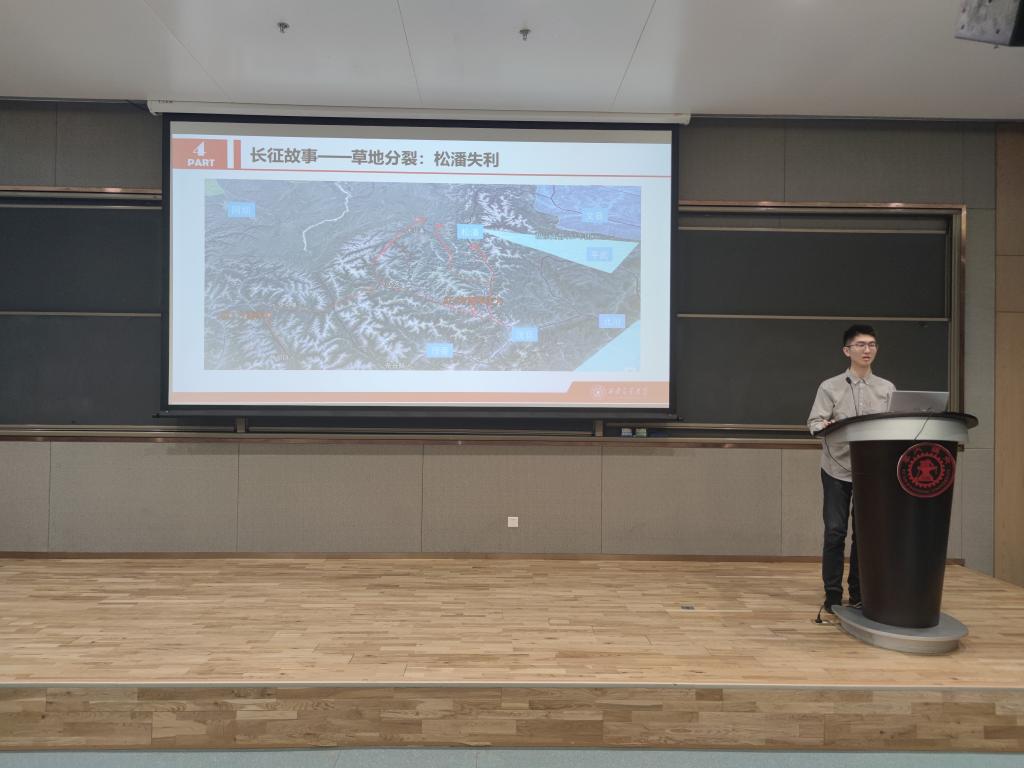 此次活动由方子艳同学主持,沿党史时间线介绍经典党史故事;王鸿博同学首先分享了中国共产党的诞生,为大家详细地介绍了中共一大的召开过程和其举足轻重的历史作用;随后张俊杰同学生动形象地通过“红薯”的故事介绍了党的三大纪律;其次李思虎和张儒亭同学分别介绍了长征过程中四渡赤水和草地分裂的故事,让同学们感受到了长征精神的伟大;时间推移到解放战争时期,王雅各同学介绍了北平和平解放的故事,让大家了解了傅作义的人物形象;最后仇云硕同学介绍了抗美援朝战争“一级战斗英雄”张积慧的故事,描述了一场惊心动魄的空军之战,激励大家要有不畏不惧的胆识、沉着冷静的心态和坚持不懈的奋斗精神,更好地投入科研生活。