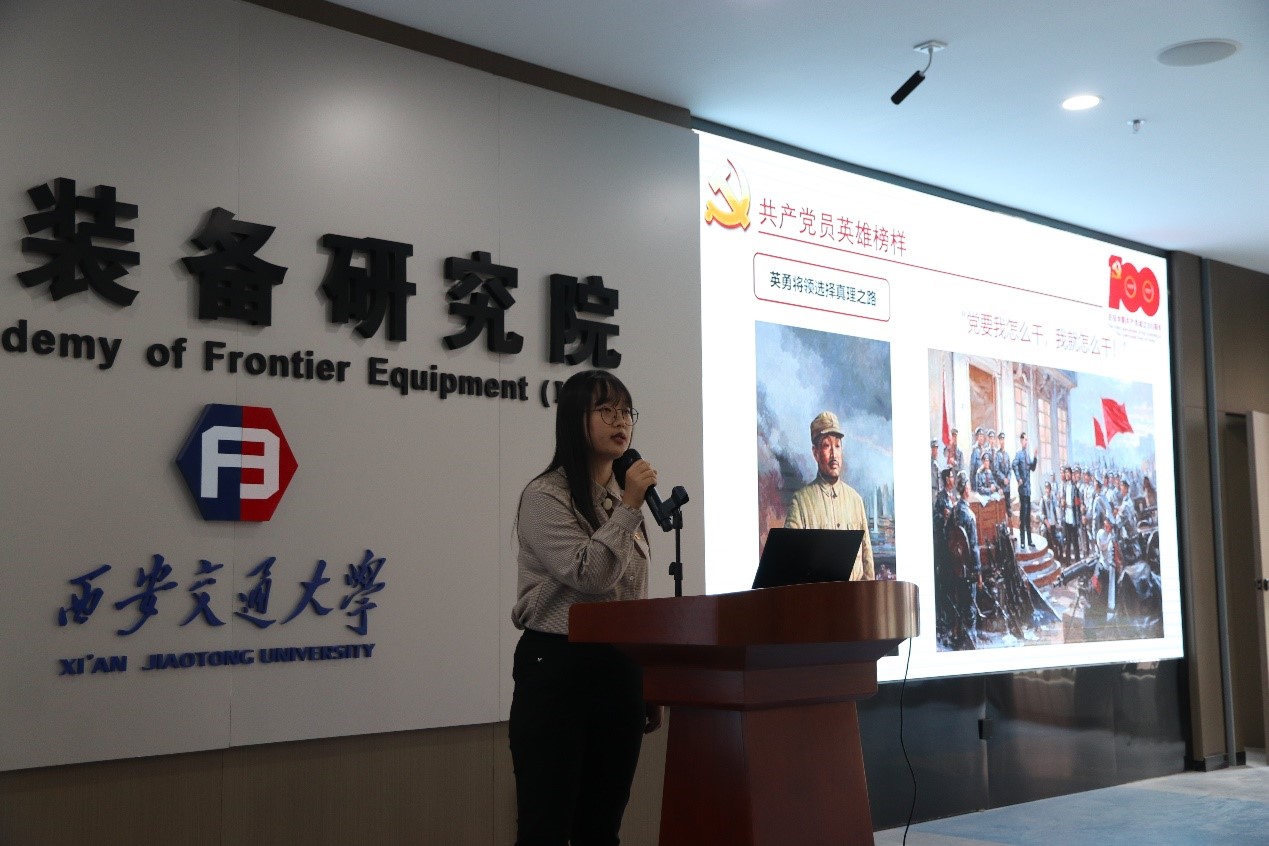 “力行”宣讲团成员张若琳进行了“胸怀千秋伟业恰是百年风华”的主题宣讲,她以党的百年奋斗历程为主线,讲述了无产阶级革命家贺龙入党、校友钱学森学成归国以及“七一”勋章获得者黄文秀的感人故事,她希望同学们坚定理想信念、强化专业技能、加强实践锻炼,践行世俱杯官方网站“为国铸器智造未来”的责任与担当。