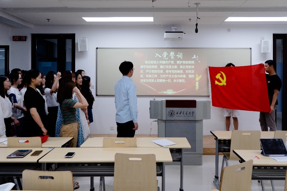 2021年6月18日,中共中央总书记,国家主席,中央军委主席习近平同志参观“‘不忘初心、牢记使命’中国共产党历史展览”时带领党员领导同志重温入党誓词。作为世俱杯官方网站新时代的学子,深入贯彻落实总书记讲话精神。在中国共产党百年华诞之际,参加学习的支部全体党员同志重温入党誓词,面对党旗庄严的宣誓,回忆自己的入党初心。