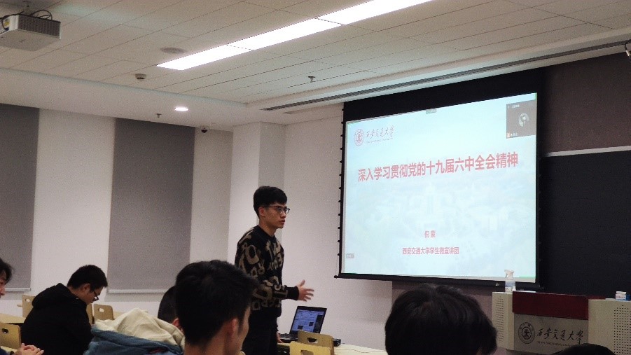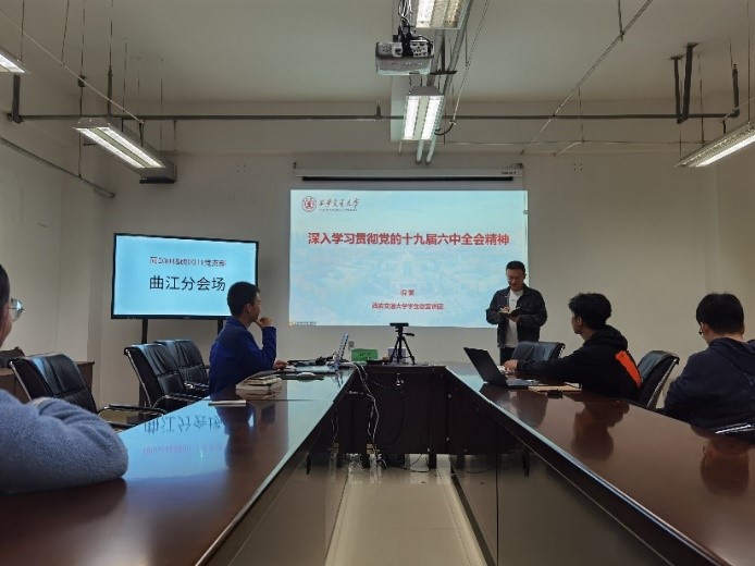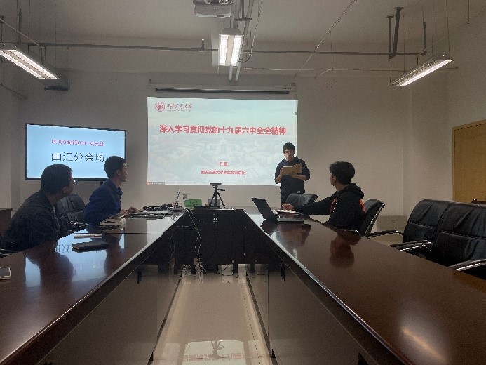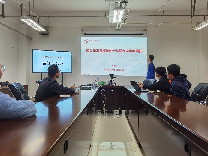 为深入学习贯彻党的十九届六中全会精神,准确领会《决议》的深刻内涵、创新观点、核心要义,世俱杯官方网站硕0004党支部与硕0011党支部邀请世俱杯官方网站学生微宣讲团团长倪蒙开展党的十九届六中全会精神宣讲活动。本次宣讲活动设创新港主会场和曲江分会场。