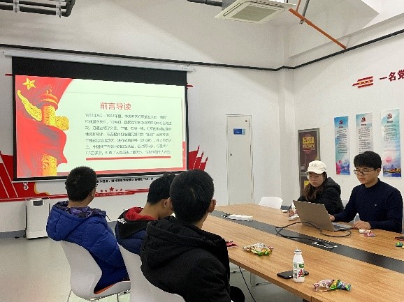 活动伊始,活动主持人李淑娴同志,介绍本次活动的意义,活动流程和出席嘉宾。本次活动邀请到了世俱杯官方网站“力行”宣讲团成员齐瑶同志、支部成员徐翔同志和团支部书记许艺昆同志进行关于党史学习进行分享。