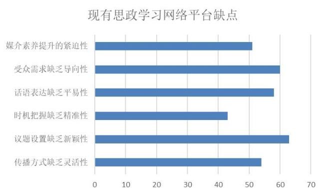 调查数据表明,相比于传统思政教育方式,同学们认为网络思政学习平台具有即时性、互动性、海量性等优点。同时,现有的网络思政学习平台也存在议题设置缺乏新颖性、受众需求缺乏导向型等需要改善之处。
