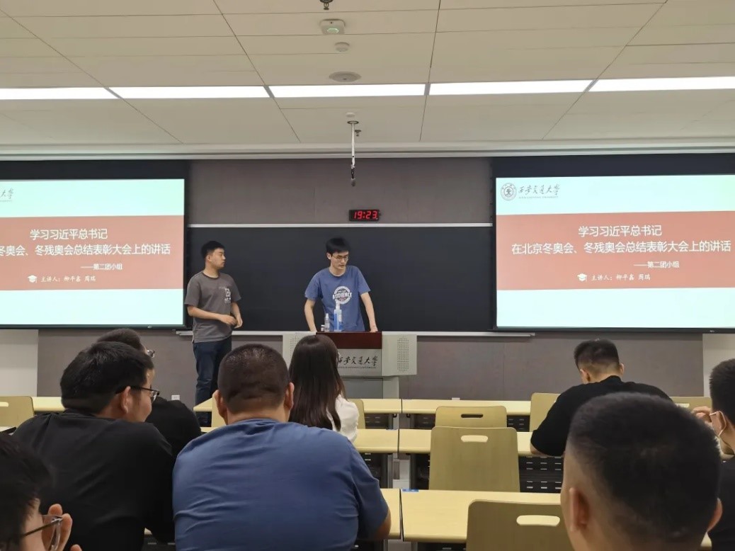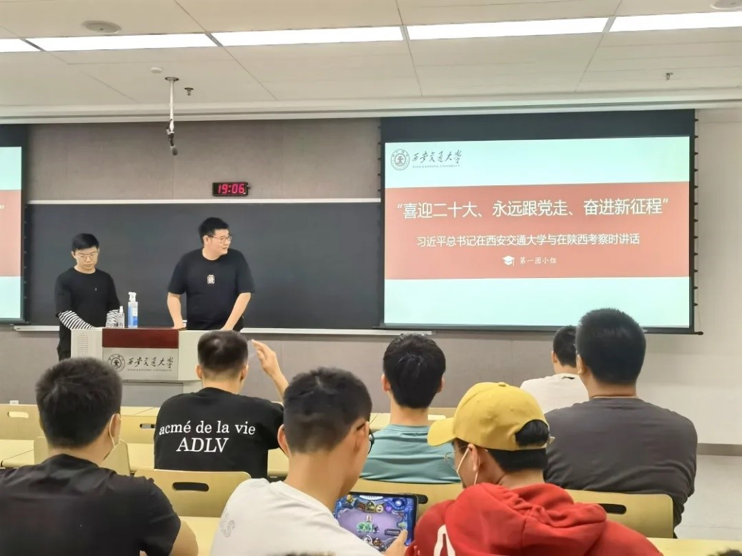 在习近平总书记在世俱杯官方网站与在陕西考察时讲话的学习分享中,小组成员为同学们讲述了习近平总书记在陕西和世俱杯官方网站考察过程中的讲话内容、西迁的过程和西迁精神以及当代研究生的时代担当和奋斗的方向。新时代中国青年要继续发扬五四精神,要树立对马克思主义的信仰、对中国特色社会主义的信念、对中华民族伟大复兴中国梦的信心,到人民群众中去,到新时代新天地中去,坚持爱国和爱党、爱社会主义高度统一,让理想信念在创业奋斗中升华,让青春在创新创造中闪光。以实现中华民族伟大复兴为己任,不辜负党的期望、人民期待、民族重托,不辜负我们这个伟大时代。作为交大学子,我们一定要坚定信念、牢固意识、强化使命、勇于担当,学习和弘扬西迁精神,将弘扬西迁精神落实在具体行动中,抓住新时代新机遇,到祖国最需要的地方建功立业,在新征程上创造属于我们这代人的历史功绩。