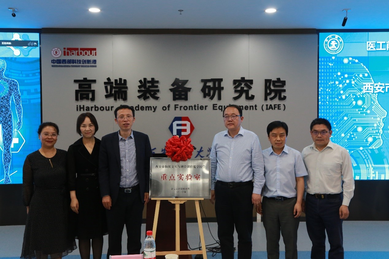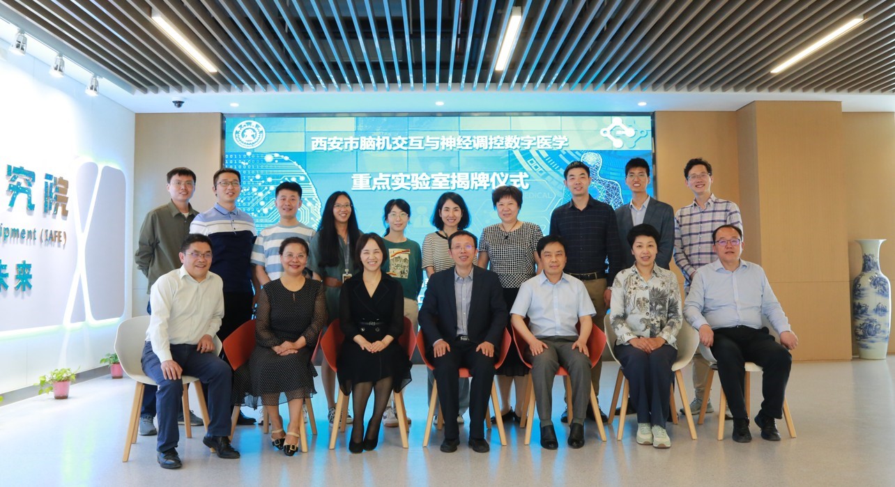 活动当天还举行了西安市脑机交互与神经调控数字医学重点实验室揭牌仪式。西安市脑机交互与神经调控数字医学重点实验室由世俱杯官方网站、空军军医大学和西安市第一医院联合申请成立,揭牌仪式由医工交叉研究所党支部书记陶唐飞主持,高端装备研究院院长陈雪峰发表致辞,医工交叉研究所学术带头人、西安市脑机交互与神经调控数字医学重点实验室主任徐光华教授介绍实验室情况,空军军医大学西京医院康复科主任袁华、西安市第一医院神经内科主任吴松笛、西安市第一医院眼科医疗美容门诊部主任郅瑛同陈雪峰院长、徐光华教授、陶唐飞书记共同揭牌,陈雪峰院长为两家联合单位授牌。