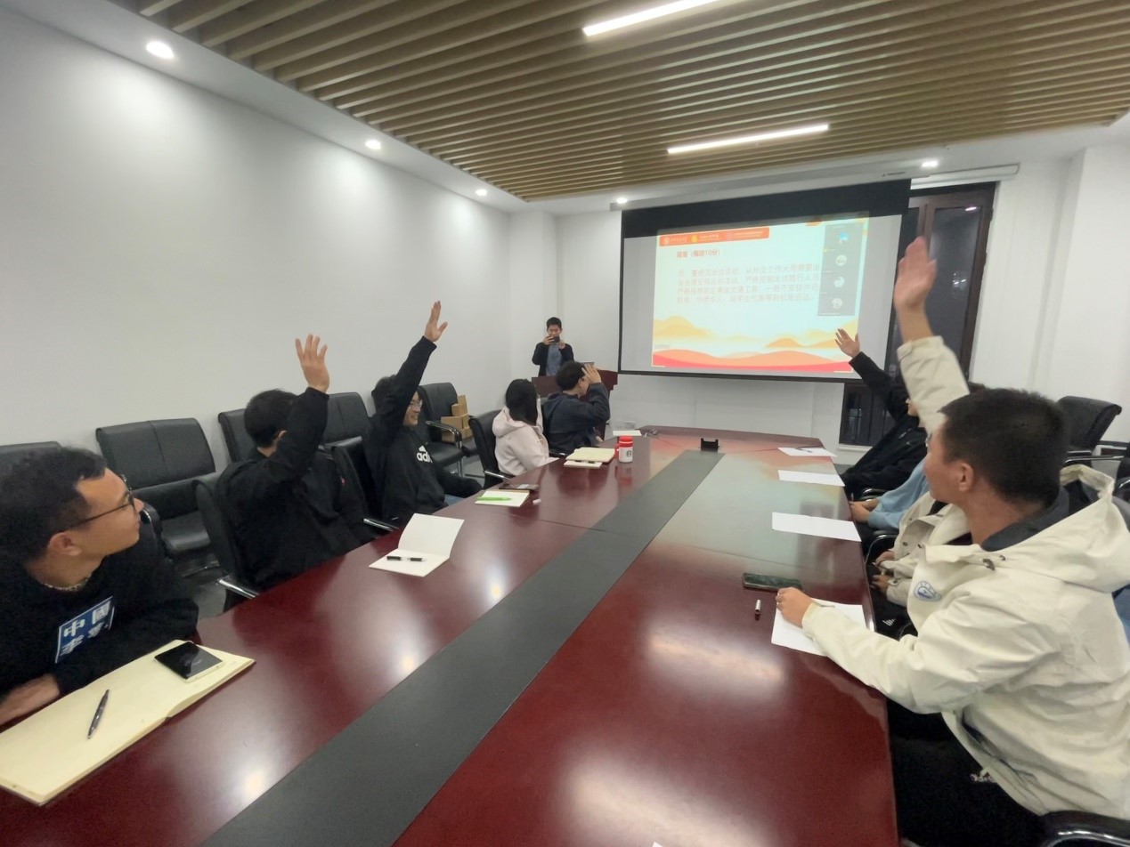 设计所博士生第三党支部本年度十月专题组织生活,选择以有奖问答形式,别开生面地开展进行。面向群体不再局限于本支部党员和积极分子同志,更是在设计所内部发起学习号召。本次组织生活会,共有八名中国共产党党员(三名兴庆同志线上参与)、两名积极分子以及四位群众到场,现场气氛热烈,学习情绪高涨。