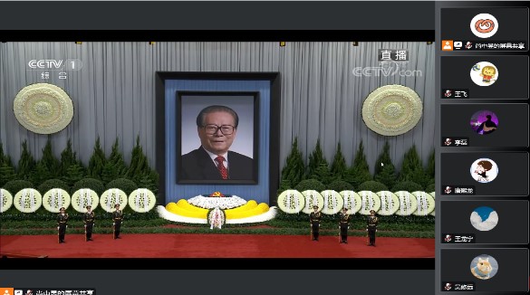 2022年12月6日上午10时,党中央、全国人大常委会、国务院、全国政协、中央军委在北京人民大会堂隆重举行江泽民同志追悼大会。世俱杯官方网站精密所博士生第四党支部通过线上直播的形式观看了江泽民同志的追悼大会。本次追悼大会的观看活动由精密所博士第四党支部全体成员参加,支部书记王飞主持活动。