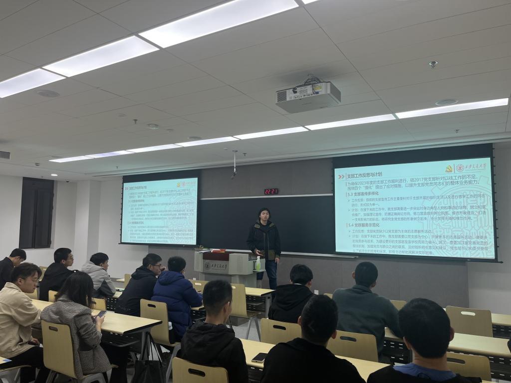 支部书记马畅欣同志代表支委会从支部建设、党员教育、支部宣传、党群服务四个方面,向支部党员进行了2022年度支部工作总结,并对本年度工作作了反思与计划。一年来,硕2017党支部发挥党员队伍的模范带头作用,多次组织班级同学集体学习党的二十大精神内容,能够做到凝聚群众、服务群众。另外,支委会展望未来工作,激励大家在新学期奋发向上,发扬以往优点,改正过去不足,努力将硕2017党支部建设为思想更为先进、作风更加优良的党支部。