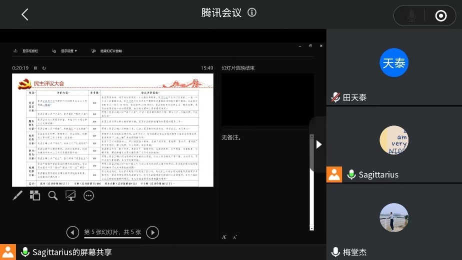 在组织生活结束之后,支部开展了民主评议会,支部全体同志开展了批评与自我批评工作,介绍了自己从成为预备党员以来的心路历程,并积极提出改善方法,也为组织内的其他同志提供了学习经验。