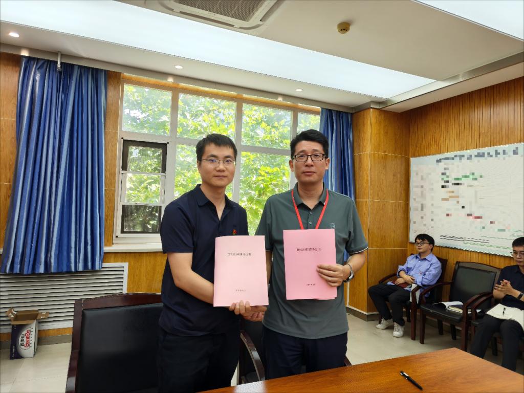 会议第五项内容是签订支部共建协议。二室党支部宣传委员王鑫同志宣读协议内容后,宋巧治书记与张进华书记在全体党员的见证下签订了协议,共同推动携手党建工作经验分享、能力提升、技术交流以及服务国家重大需求等方面的共同工作。