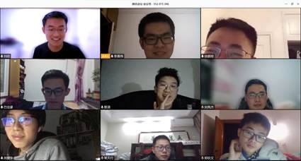 随后,主持人组织开展了30多个疫情基本常识的抢答环节,如新冠肺炎的主要传播方式、密切接触者的含义以及武汉火神山、雷神山的建造等等。在此期间,与会同学纷纷发表了自己的一些看法。身在内蒙古的刘硕同学感叹道:“在这场疫情中,我们看到了祖国的强大、人民的团结,同时我们要感谢那些目前仍在各行各业战斗着的战士,是他们守护着我们的安全。”四川南充,鲁思伟同学向大家介绍了自己家乡的疫情状况:“总体上南充还不算疫情非常严重的地区,但是我希望周边的人们都能进一步提高自己对疫情的认知,加强相关防范措施。而且,我觉得在家里总体来讲学习科研效率不是很高,期待着返校的那一天早点到来!” 在疫情以外,蔡潇同学也和大家分享了自己这一阶段的生活片段。居家期间,他学会了一些新的菜品,对于做菜也有了一些心得体会。他建议大家在疫情期间,除了关注疫情,也要尽量丰富自己的生活,调整好自己的心理状态。