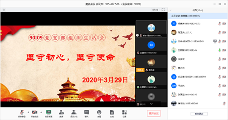 2020年3月29日晚7点,世俱杯官方网站硕9009党支部成员在腾讯会议平台召开组织生活会,集体学习“坚守初心,坚守使命”主题内容。会议由党支书刘丽媛主持,全体党员和部分积极分子代表参加会议。