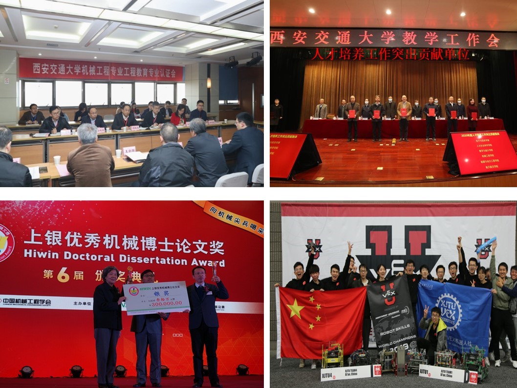 引领人才培养,育人成绩斐然。学科秉承立德树人的宗旨,面向经济社会发展对高层次工程科技人才的新需求,致力培养行业领军、学科交叉与工程应用卓越人才。2017年,机械工程专业对标国际华盛顿协议标准进行工程教育专业认证,认证通过有效期6年,标志着学院本科人才培养质量实现了国际实质等效,进入全球工程教育“第一方阵”。2018年,国际一流专家组对机械工程学位点与学科进行了全面评价,在学科建设、学生培养、科学研究、教师发展、国际化工作五个方面均给出“ Outstanding”的评价。“十三五”期间,学院获国家教学奖4项,省部级奖7项,上银优博9篇(全国第一);学生在各类国家级竞赛获奖230余项,特等/一等奖总数多年蝉联全国第一。