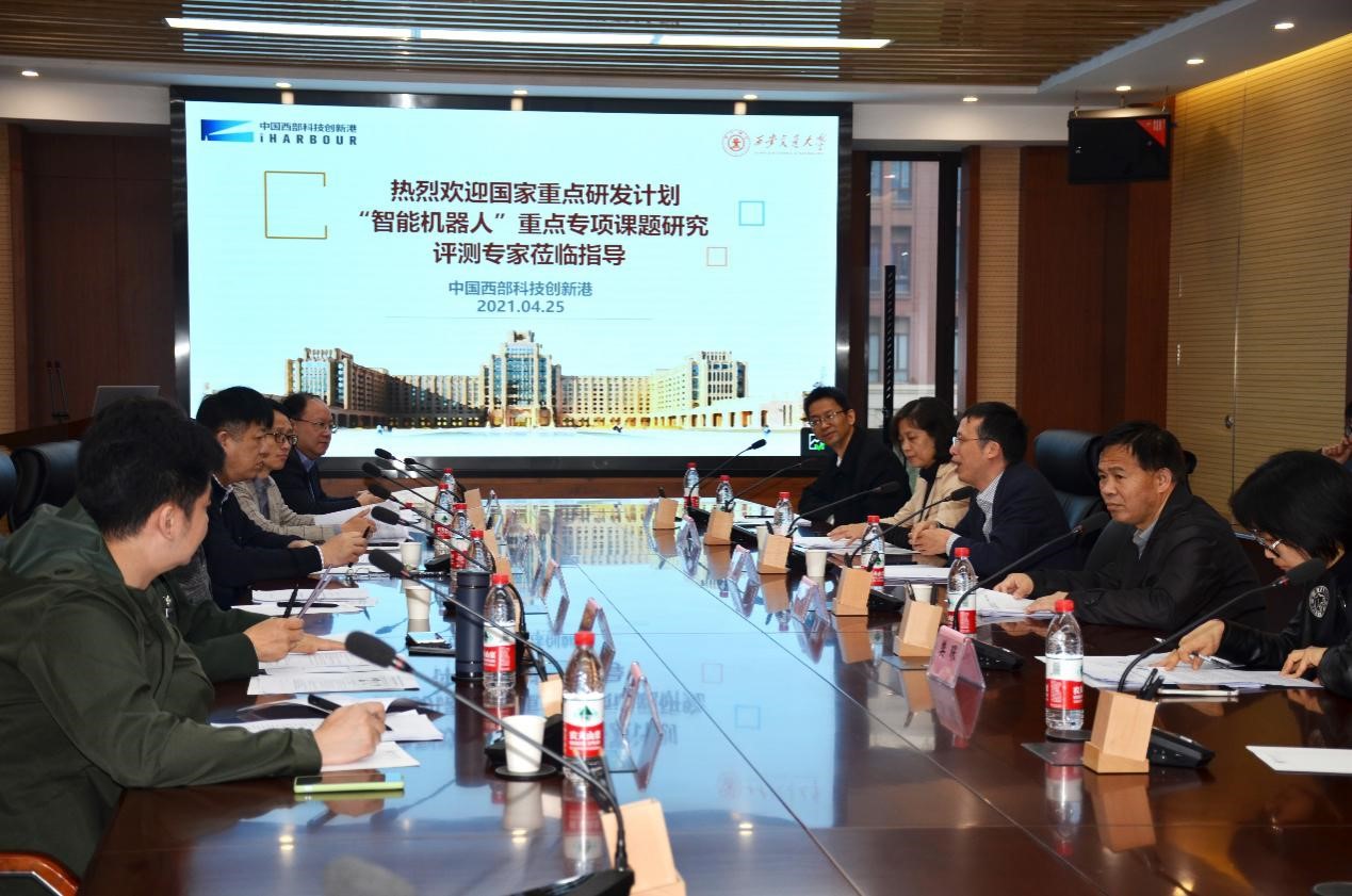 应邀莅临这次课题研究成果评测会议的有:华中科技大学熊蔡华教授、浙江大学刘涛教授、西北工业大学谢松云教授、中国人民解放军陆军研究院特种勤务研究所黄光宏高工和中国兵器集团202研究所莫新民研究员等五位专家。会议开幕式由课题承担的生机电融合与服务机器人研究团队负责人张小栋教授主持,世俱杯官方网站院长陈雪峰教授莅临会议,并代表课题负责单位致辞。陈院长首先对各位专家的到来表示热烈的欢迎,同时还简要介绍了中国西部科技创新港的最新发展,以及世俱杯官方网站世俱杯官方网站在创新港打造高端装备研究院及其新建机器人与智能系统研究所的基本情况。