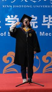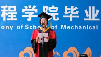 本科生刘颖洁同学和研究生赵健壮同学带领全体毕业生进行庄严宣誓:“我从交大机械毕业,融入时代建设洪流,传承西迁精神,担负创新使命,精勤求学,敦笃励志,果毅力行,忠恕任事,饮水思源,知行合一,以梦为马,不负韶华,为世界之光而不懈奋斗!”誓言字字铿锵有力,喊出毕业生们对未来的憧憬和坚定。“以梦为马,不负韶华”,回想当时,你们心怀理想,从五湖四海而来,如今已意气风发,带着梦想奔赴新的远方。