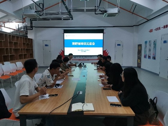 新学期、新面孔,会议伊始,杨江坤老师首先对于本学期加入兼职辅导员团队的新成员表示了热烈欢迎,并简要介绍了本学期的学生工作安排,随后全体兼职辅导员分别进行了自我介绍,与会成员都熟悉了彼此的分工,已有过相关工作经验的兼职辅导员也分享了自己的工作经验,交流了各自的工作心得。