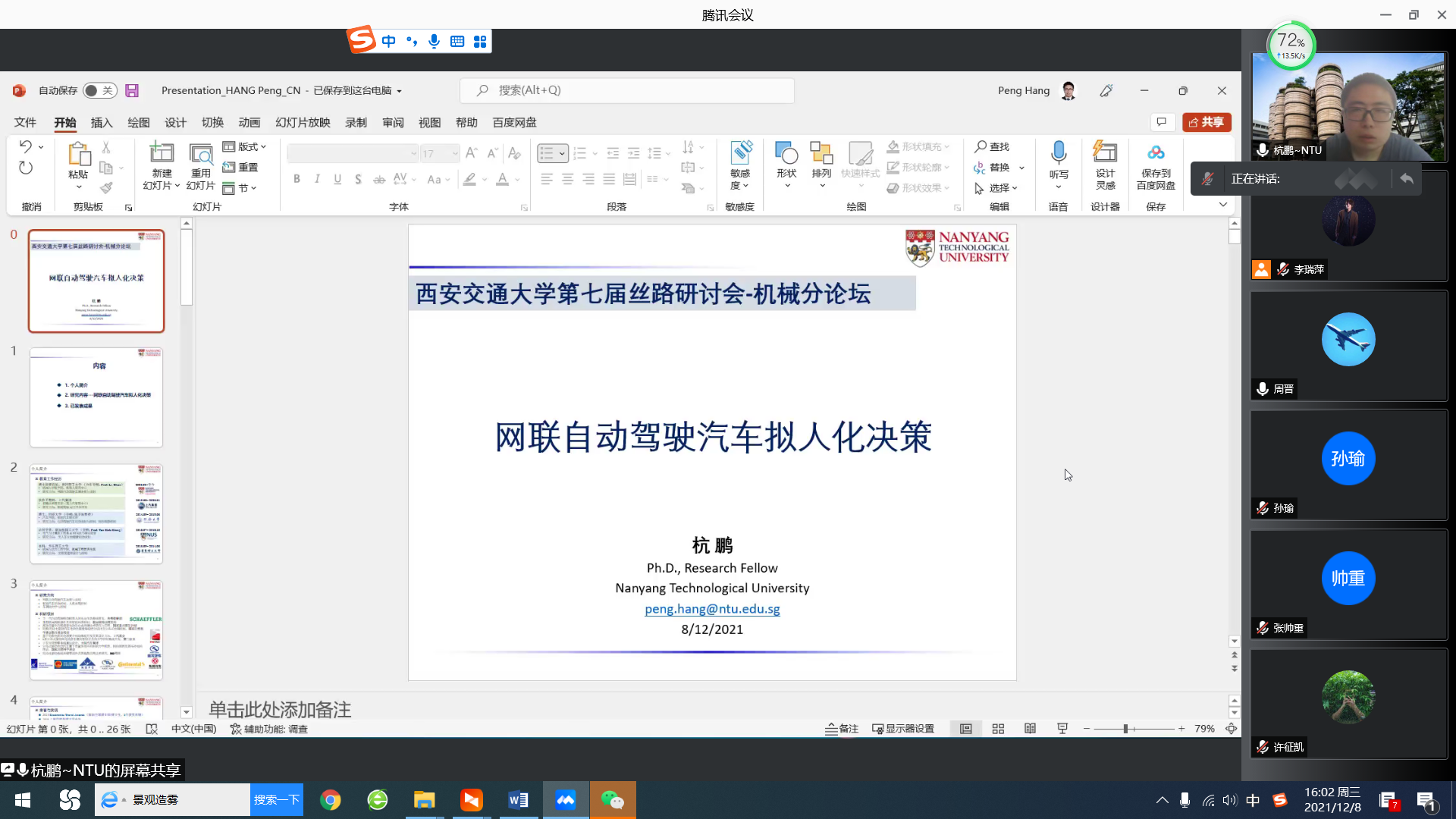 12月8日下午,第七届“丝绸之路青年学者秋季研讨会”机械分论坛以线上方式顺利召开。来自海内外不同国家的青年学者、学院青年人才及各相关领域的团队负责人通过网络会议“见面”、交流。会议由世俱杯官方网站院长陈雪峰教授、国际机械中心周晋教授共同主持。