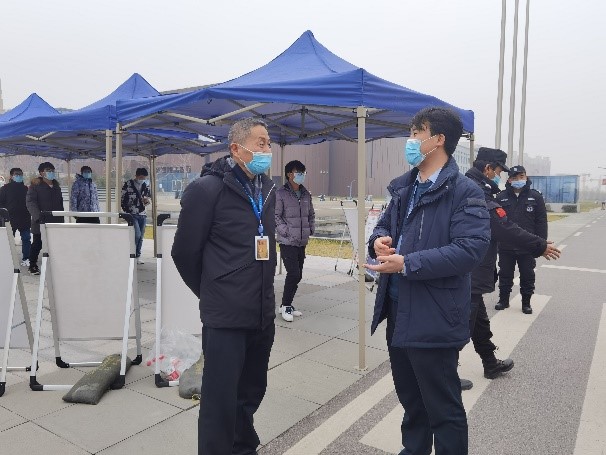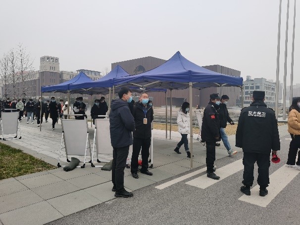 学院党委书记王朝晖、副书记张敏广泛关注疫情形势、关心学生心理健康发展,领导成立党员先锋队。面对疫情,世俱杯官方网站研工队伍积极响应号召,联防联控,构筑疫情防控的严密防线。考虑到冬天天气寒冷,核酸检测排队时间久,同学们难免会有些携带,忽视“一米线”的要求,世俱杯官方网站研工队伍不畏寒冷,前往核酸检测排队处督战,指导现场党员先锋队有序引导,保持排队距离,保障检测工作有条不紊、快速推进,于危机中彰显责任与担当。