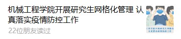 1. 成立抗疫储备志愿者队伍,助力学院疫情防控。当前疫情正处高峰期,防控形势严峻、任务紧迫,为建强学院疫情防控志愿者队伍,配合学院党员先锋队疫情防控,世俱杯官方网站研究生会志愿服务中心成立抗疫储备志愿者队伍,时刻备战,真情奉献,展现了交大机械青年的担当精神。