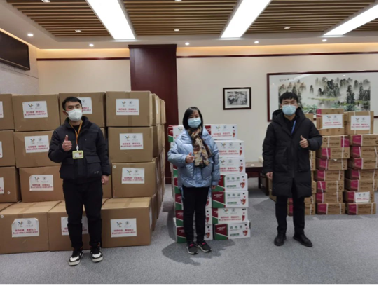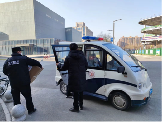 图3 为研工部、保卫处和物业送上防护物资
