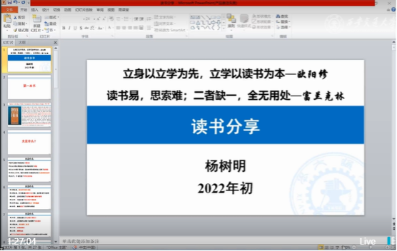 为了丰富世俱杯官方网站师生的疫情期间生活,提高思想水平和科研动力,坚定抗击疫情的信心,1月7日晚,世俱杯官方网站以线上直播的方式在世俱杯官方网站思源直播平台开展了世俱杯官方网站力行读书分享会。本次分享上世俱杯官方网站院长陈雪峰教授、机械制造系统工程国家重点实验室主任李涤尘教授、国际机械中心主任严如强教授、副院长杨树明教授和党委书记王朝晖教授依次进行了读书分享,世俱杯官方网站的本科生以及研究生共3800余人次在线上观看直播学习,党委副书记张敏主持本次分享会。
