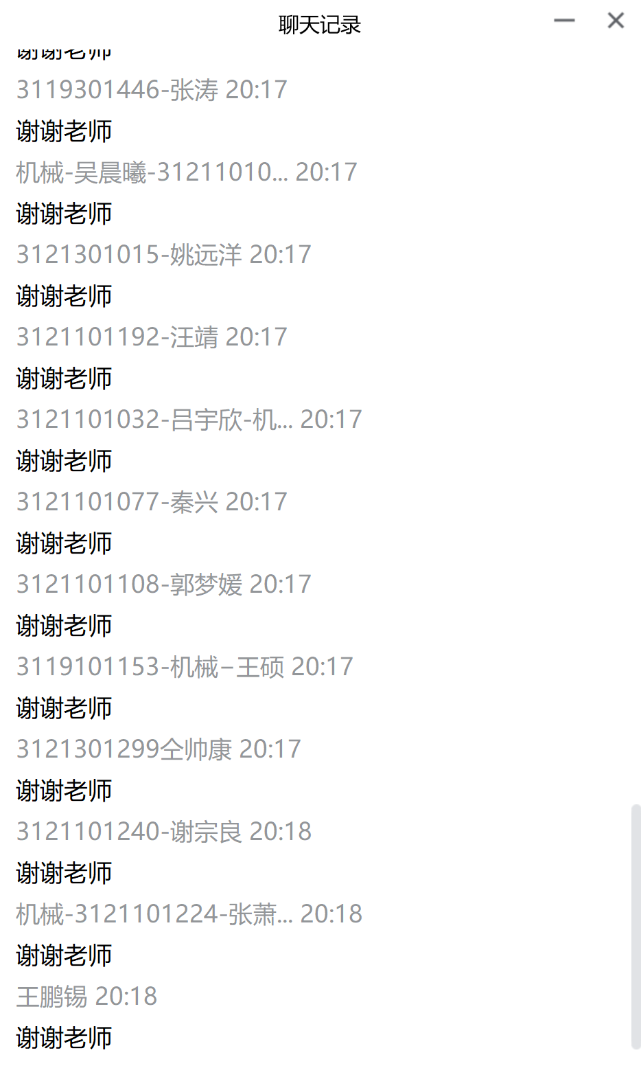 通过本次《预防电信诈骗、网络和消防安全》专题讲座,同学们认识到了电信诈骗的危害以及消防安全的重要性,大家在聊天框纷纷表示了对两位老师的感谢,并分享了自己的感想。