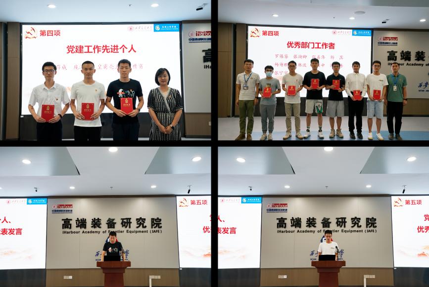 随后,张敏副书记、杨江坤老师和苏宇老师分别为“党建工作先进个人”和“优秀部门工作者”予以表彰。同时,“党建工作先进个人”代表庞泽明同志和“优秀部门工作者”代表罗谋睿同志围绕党建办一年工作以来的所学、所悟、所感同与会成员们进行了交流分享。