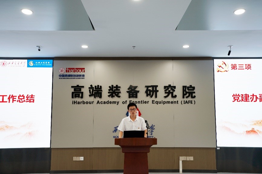 会议伊始,党建办副主任薛成代表研究生党建办进行工作总结汇报,报告系统总结了研究生党建办过去一年在深化党员思想认识、推进研究生基层党建、凝聚抗疫先锋力量、加强自身建设等方面所取得的优异成绩和经验,对当前研究生党建办的建设发展提出了思考,并对未来进一步团结带领学院研究生党员弘扬西迁精神、坚定理想信念、矢志科技报国等方面提出了工作思考。