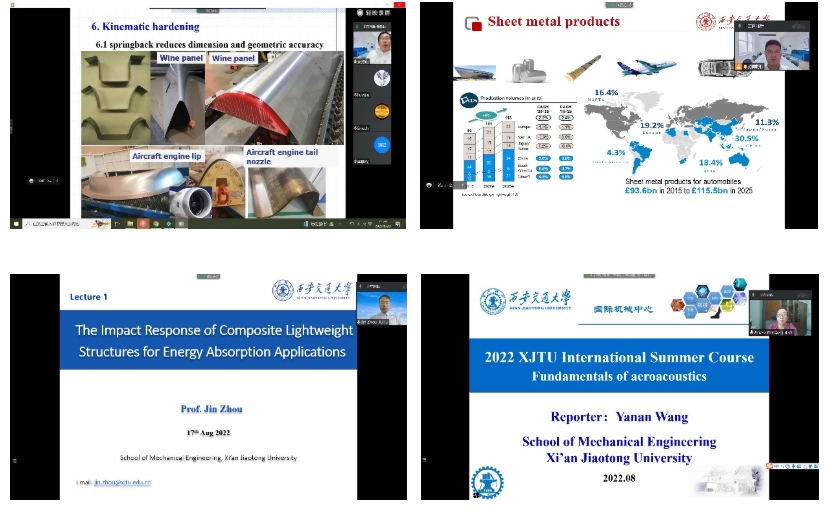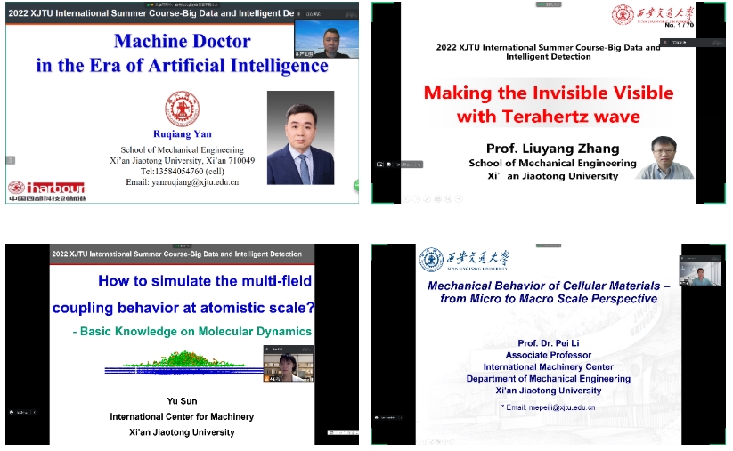 此后,我院国际机械中心张留洋教授、孙瑜副教授、李培副教授、娄燕山教授、刘啸川助理教授、周晋教授、王亚南助理教授向全球学生讲授了“从不可见到可见的利器-太赫兹波”、“如何模拟多场耦合下的原子尺度行为”、“多孔材料力学行为-从微观到宏观”、“面向成形和产品设计的金属力学性能研究”、“面向工业化应用的轻质复杂薄壁构件先进制造工艺”、“复合材料轻量化结构抗冲击吸能研究”、“气动声学基础理论”相关讲座,通过深入浅出的讲解方式,为全球学生提供了大数据诊断与智能检测领域多维度、前沿性的视角与思考。