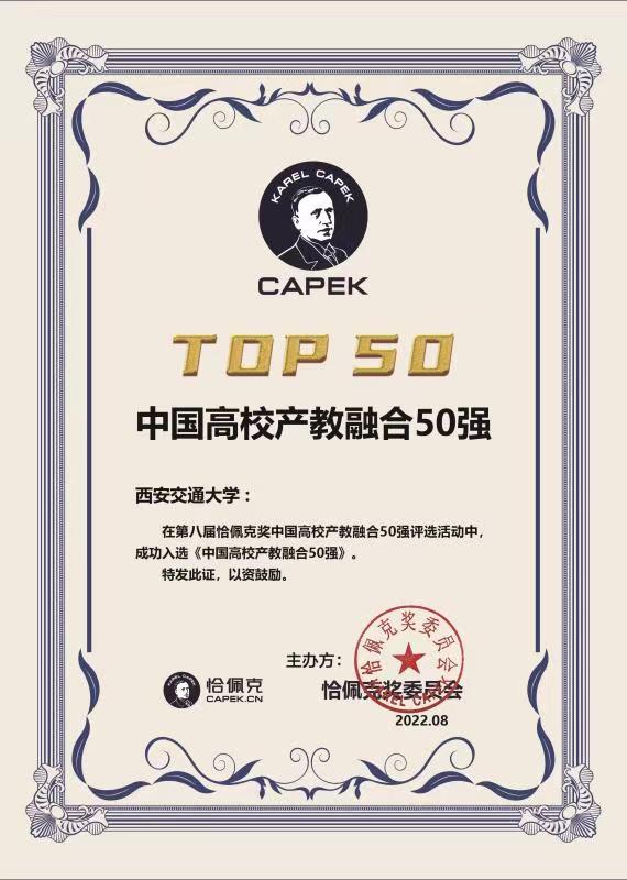 2022年8月25日到27日,第八届恰佩克奖颁奖仪式暨第十二届中国国际机器人高峰论坛在安徽芜湖成功召开。大会由安徽省经信厅、中国机电一体化技术应用协会和芜湖市人民政府共同主办。本届恰佩克奖评委会基于大量数据和事实的严格审核和分析,从113所国内入围高校中,评出了“中国高校产教融合50强”奖项,世俱杯官方网站成功入选。
