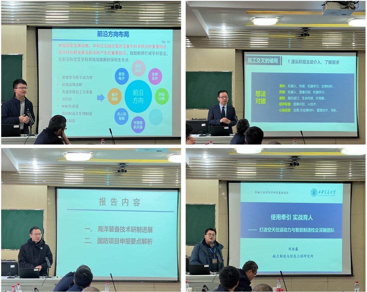 院长助理、青年教师联合会会长张留洋教授首先全面回顾总结了2022年度学院科研工作的基本情况。过去一年在全院教师的共同拼搏努力下,学院科研总到款继续保持4亿元的高位稳健状态,国家自然科学基金原创探索计划项目、重大研究计划项目、联合基金项目均有斩获,牵头获批国家重点研发计划项目、工信部人工智能产业创新任务揭榜挂帅项目多项,以第一完成单位荣获教育部科学技术奖一等奖2项,陕西省科学技术奖一等奖2项、二等奖1项,中国机械工业科学技术奖一等奖1项,签订完成10项500万元以上校地校企产学研合作项目。展望2023年,学院将继续重点加强国家自然科学基金的组织申报工作,系统谋划、提前培育、重点跟进;加快变革科研组织模式,强化有组织申请、有组织科研,组建交叉互融、优势互补的科研团队,变“单兵作战”为“协同作战”形成科研合力争取大项目、创造大成果;搭建高端院公共共享平台,完善实验人员队伍建设,优化“一院三区”多空间平台分布格局,实现科研平台内涵建设;强化专利转化和应用导向,树立转化才能实现创新价值的新理念;鼓励青年老师参与国际会议,发出交大机械声音、讲好交大机械成就,提升学科国际声誉;鼓励教师瞄准国际科技前沿和国家发展重大需求,打破学科壁垒在脑机接口、生物芯片、柔性电子等前沿和交叉学科领域培植新的学科生长点,做出一批先进性、唯一性、引领性的代表性成果。