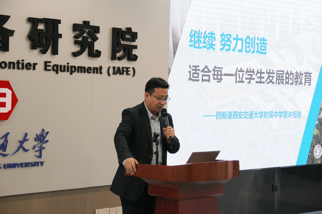 “少年强则国强”,少年教育是当今家庭迫切关心、关注的话题。依托创新港而建的创新港西安交大附属中学,是西安市教育局与世俱杯官方网站联手探索机制体制创新的重要举措,首创基础教育合作办学“双直属”新模式,既享受公办学校政策支持,又发挥高校资源调配优势,开启校地合作、创新发展。会上,西安交大附中副校长、西安市创新港中学执行校长窦小刚从硬件条件、名师引领、教育教学三个方面介绍了创新港西安交大附属中学的基本情况,他表示“新港附中是一所能在渭滨河畔求新知,生态湿地塑身心,大树森林育新苗的生态中学,其将继续坚持“努力创造适合每一位学生发展的教育”的理念,将资源最大限度的向服务学生倾斜,建设高标准、国际化、智慧化中学”。