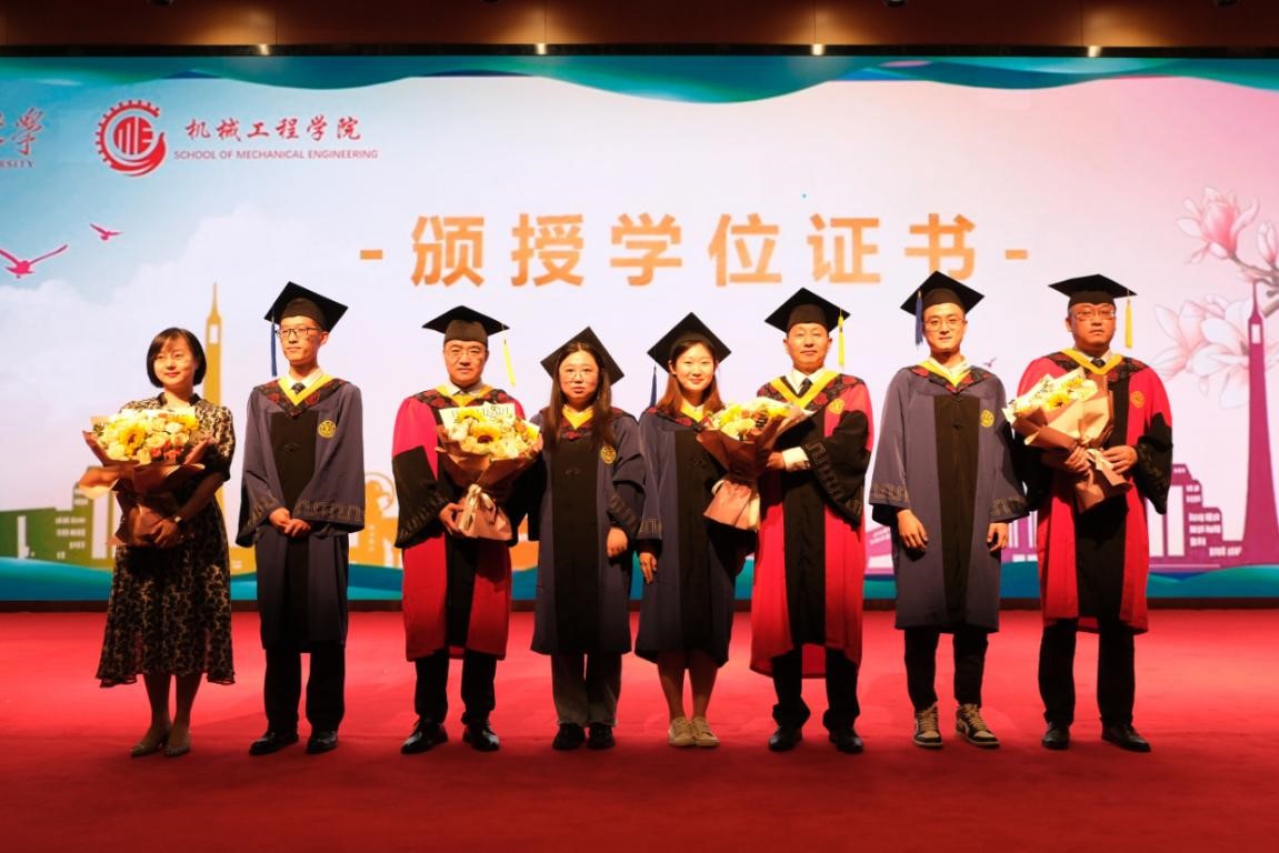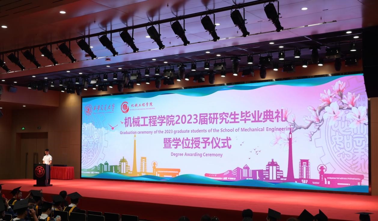 2023届硕士毕业生代表薛成分享毕业感言并领誓。薛成回顾了三年间自己与交大成长的点点滴滴,交大培养了同学们精勤求学的品行、我敦笃励志的志向、果毅力行的勇气、忠恕任事的情怀。全体毕业生举起右拳,庄严宣誓:“我从交大机械毕业,融入时代建设洪流,传承西迁精神,担负创新使命,精勤求学,敦笃励志,果毅力行,忠恕任事,饮水思源,知行合一,为国铸器、智造未来,为世界之光而不懈奋斗!”誓言字字铿锵有力,喊出了大家对未来的憧憬和坚定。