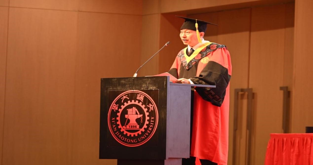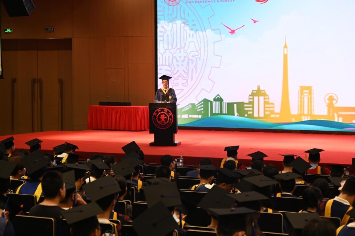 世俱杯官方网站党委书记王朝晖教授为毕业生送上了毕业寄语。王朝晖教授回顾了同学们在交大的求学时光,对同学们的毕业表示祝贺,希望大家鹏程万里、前程似锦。希望同学们带着交大人的光荣与梦想,在时代洪流中抓住机遇,用更深刻的眼光审视自己,以更大的胸怀迎接挑战,继续传承好西迁精神,敢担当、勇作为,做新时代的奋进者,不懈攀登、永不退缩!