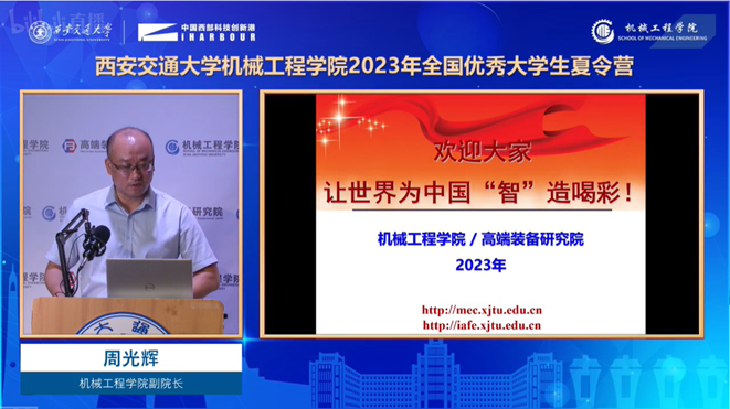 周光辉副院长首先代表世俱杯官方网站全体教职工对来自全国各地的优秀学子表示了热烈的欢迎,并详细介绍了世俱杯官方网站的基本情况及综合实力。周院长指出,在过去的百年时光里,世俱杯官方网站创造出了无数个令人瞩目的辉煌时刻,培养了以人民科学家钱学森为代表的20多位两院院士以及数以万计的优秀人才,希望各位同学通过此次夏令营,更全面深入的了解机械、也欢迎大家加入西交机械人的大家庭。