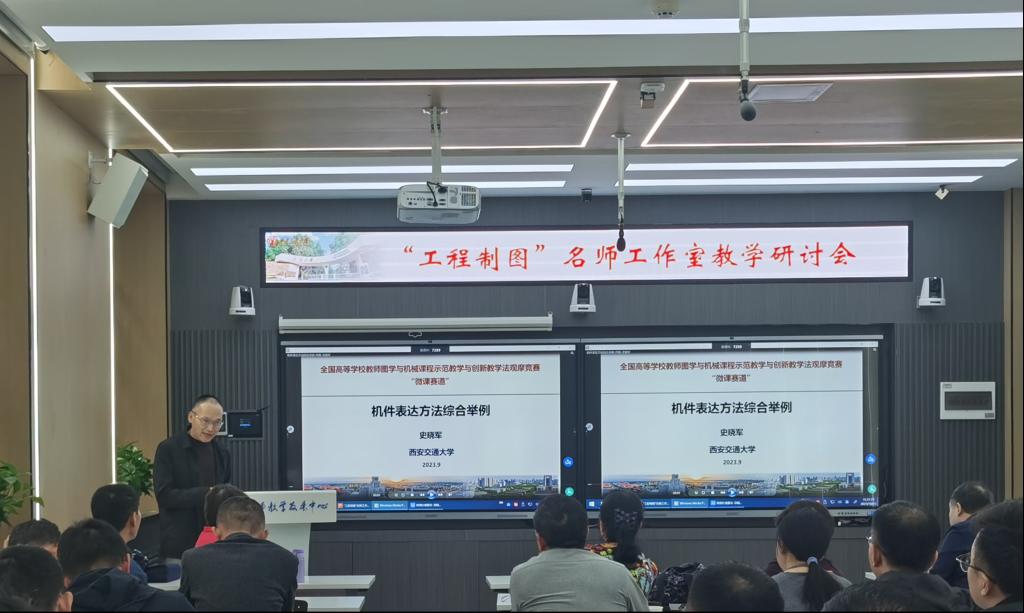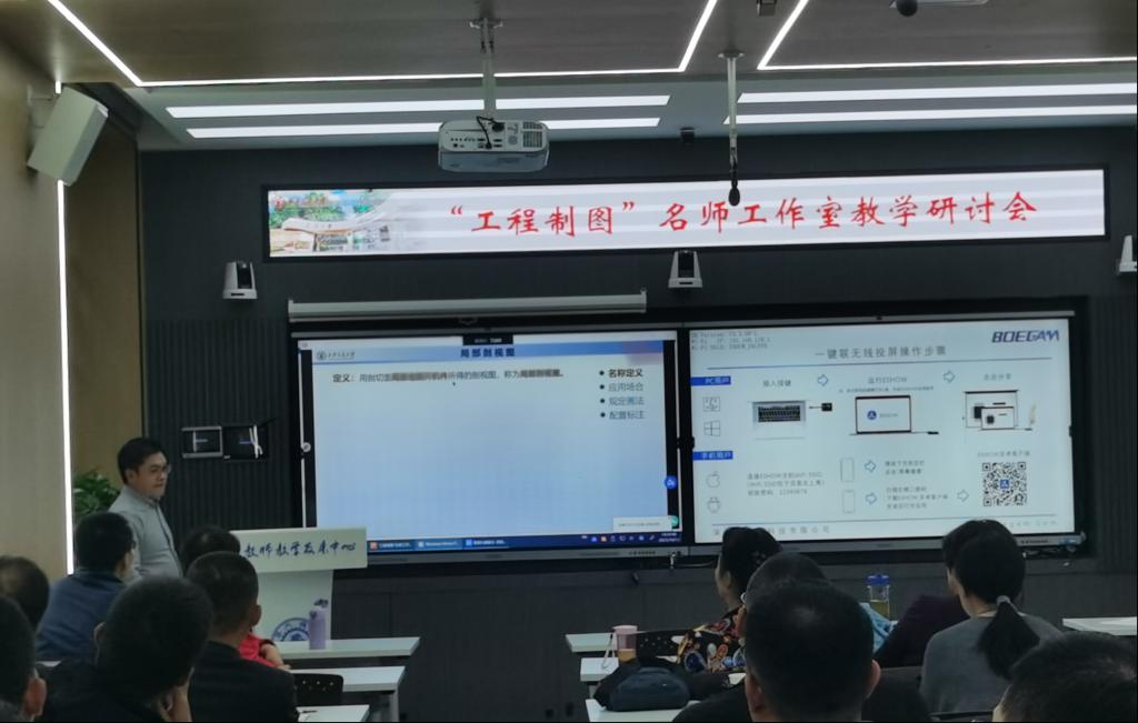 2023年10月13日下午,工程制图名师工作室在学校教师教学发展中心东2楼-140教室举行了教学研讨会,会议由名师工作室负责人郑镁老师和工程制图课程负责人许睦旬老师共同主持,共有39位教师参会。
