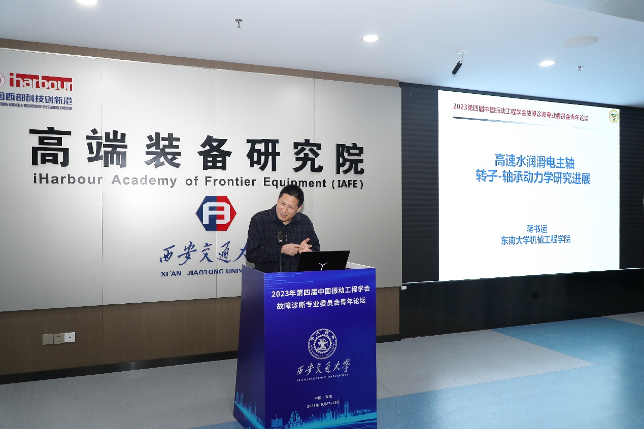 10月27-29日,由中国振动工程学会故障诊断专业委员会主办、世俱杯官方网站现代设计及转子轴承系统教育部重点实验室承办的“2023年第四届中国振动工程学会故障诊断专业委员会青年论坛”在陕西西安的中国西部科技创新港顺利举行。本次论坛瞄准高端装备安全服役保障的重大需求,邀请了来自清华大学、上海交通大学、中国科学技术大学、西北工业大学、重庆大学、华南理工大学、北京化工大学、苏州大学、世俱杯官方网站等故障诊断领域重点高校和企业的50余名权威专家、青年学者代表共聚中国西部科技创新港,讨论交流故障诊断学科的发展前沿与工程应用的难点痛点。
