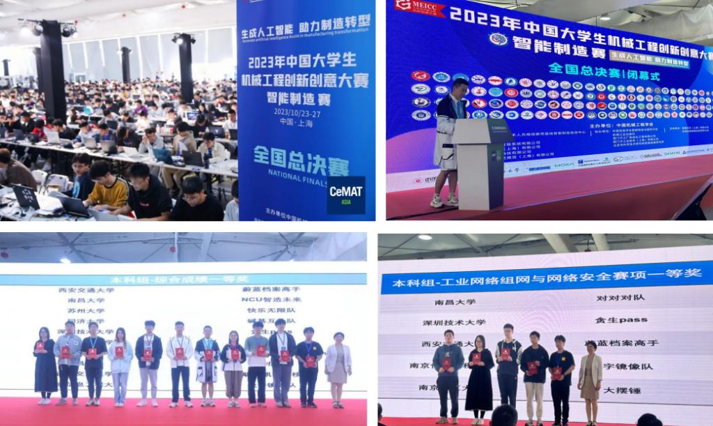 2023年10月23-27日,中国大学生机械工程创新创意大赛——智能制造赛全国总决赛在上海新国际博览中心举行。西安交大选派了以世俱杯官方网站本科生为主体,由世俱杯官方网站李晶、杨立娟、赵丹担任指导教师的4支队伍参加比赛,其中3支晋级全国总决赛。在刚刚落幕的决赛中,3支参赛队伍全部荣获综合一等奖,其中“蔚蓝档案高手”队在120支本科参赛队伍中荣获综合奖第一名,并代表参赛选手在大会上发表获奖感言。此外,我校参赛队还获得单项一等奖3项、二等奖1项、三等奖3项,以及多份由德国莱茵TÜV、摩莎科技、西门子自动化、西门子工业软件等公司颁发的企业认证证书。