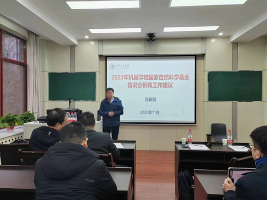 会上刘永忠副院长详细分析了2023年学校及学院国科基金的基本情况,并从近几年申报及立项情况,全面分析总结了目前基金申报面临的形势和问题,并就2024年我院基金申报工作给出了宝贵的意见和建议。