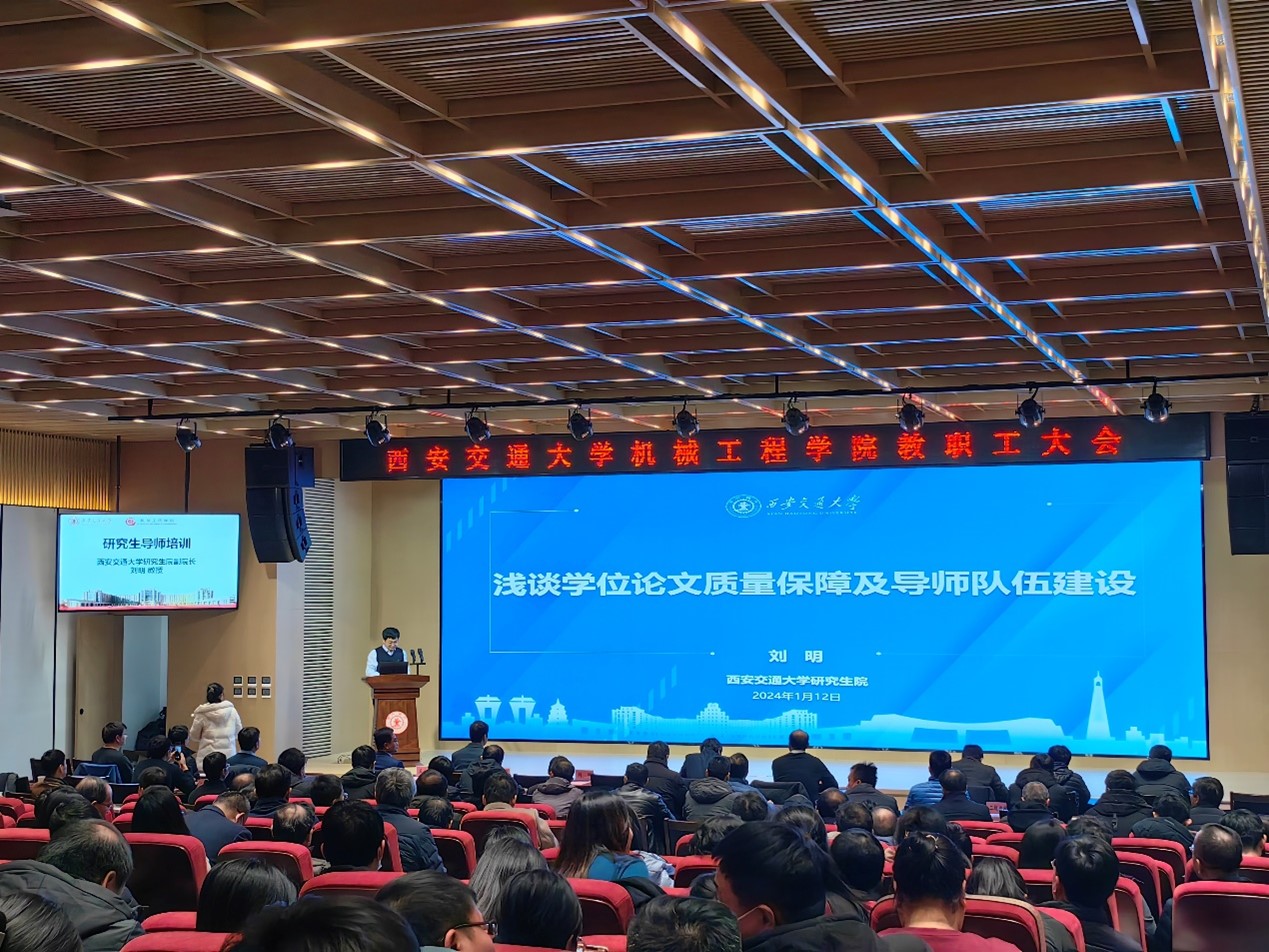 2024年1月12日下午,世俱杯官方网站在曲江校区协同创新中心南一楼B座报告厅召开领导班子述职评议暨全院教职工大会。会上,学院党委书记张俊斌,常务副院长雷亚国,副院长周光辉、王永泉、贺健康、崔健磊,党委副书记张敏依次做述职述廉报告,学校党委常委、副校长、世俱杯官方网站院长洪军参加会议。会议由学院工会主席戚社苗主持。