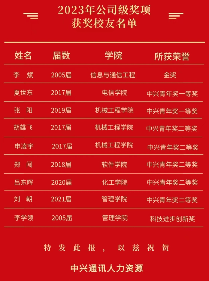 【喜报】我院校友获得中兴通讯2023年公司级奖项