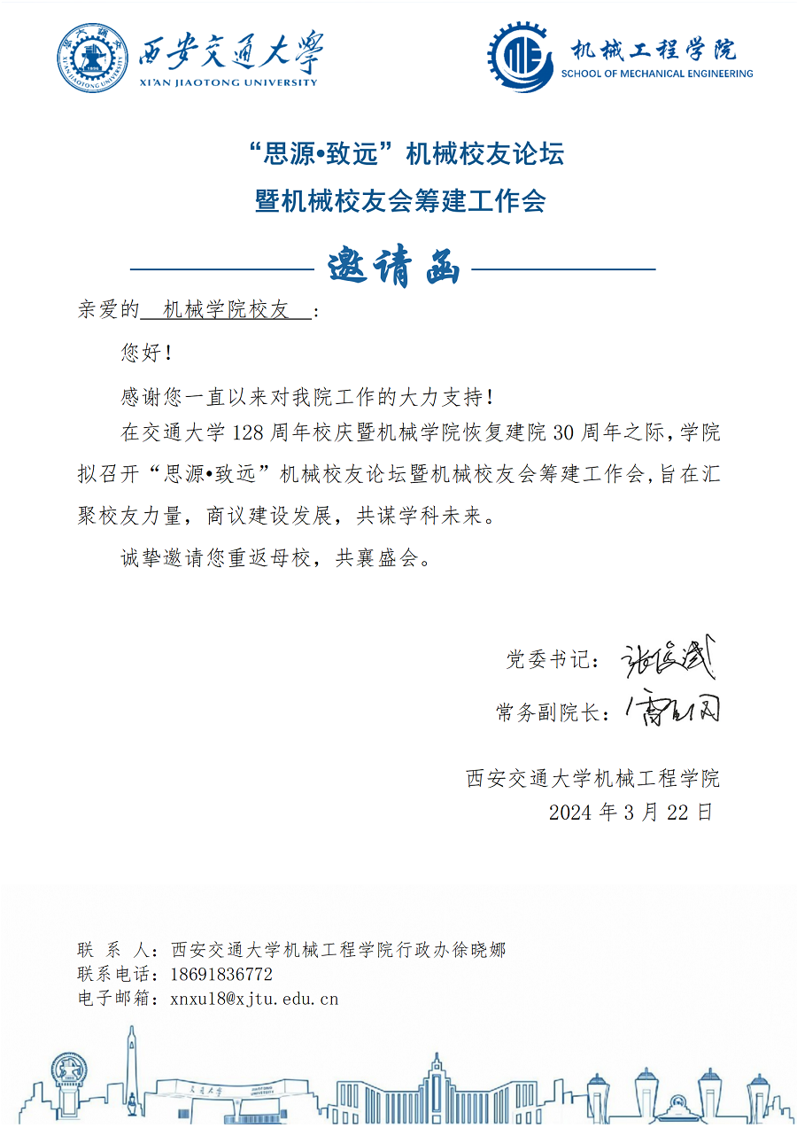 “思源·致远”机械校友论坛暨机械校友会筹建工作会邀请函