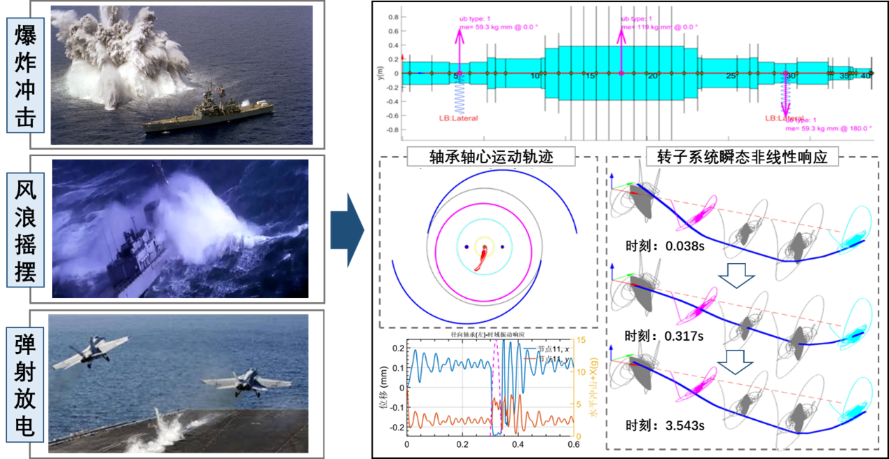 强冲击下转子轴承系统的动力学响应