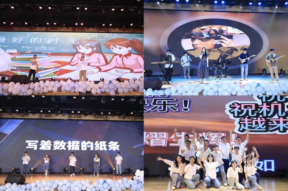 由刘姝楠、韩佳原等同学带来的歌曲串烧,让大家共同回顾了从入校相识到即将分别的点点滴滴,互致祝福。胡涞、雷杨浩等毕业生同学通过舞蹈《向快乐出发》展现了毕业生们对于未来的美好期待和满腔抱负。愿他们怀揣乐观的心态,勇敢面对挑战,开启自己的美好人生之旅。
