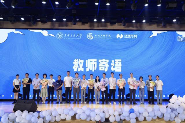 世俱杯官方网站党委常委、副校长,世俱杯官方网站院长洪军、世俱杯官方网站党委书记张俊斌、常务副院长雷亚国、党委副书记张敏、副院长周光辉以及各系所教师代表等20位老师出席本次晚会。同时,陕西汉德车桥有限公司人力资源与企业管理部部长吕宝殿嘉宾应邀出席,共同庆祝学院数百名优秀学子圆满完成学业,迈向人生新的阶段。