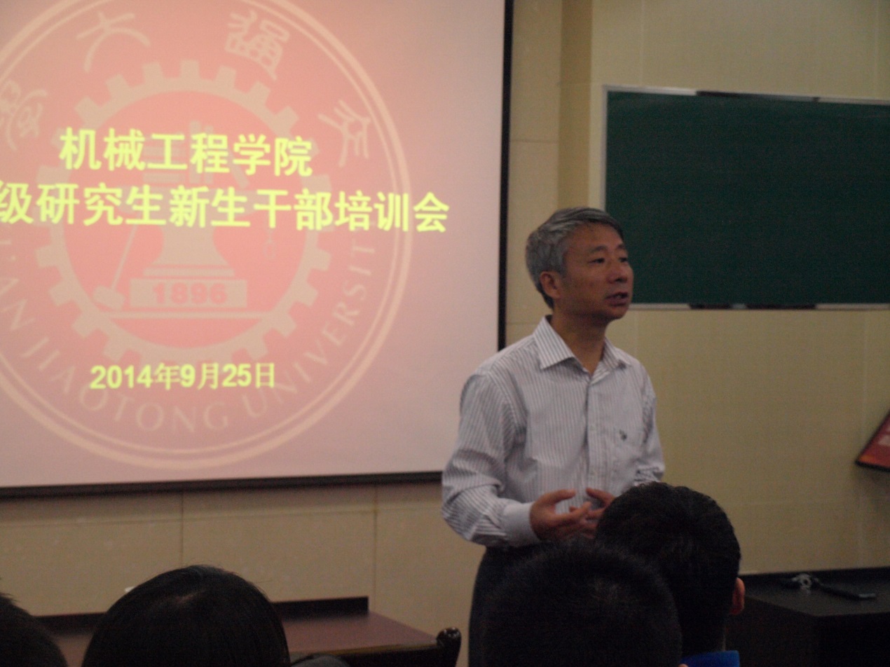 学生处处长尚春阳教授在讲话中重点向大家介绍了学生处的主要职责范围。秉着为同学服务的精神,学生处在食堂、宿舍以及困难自助等方面有着完善的保障体系,为同学们在研究生阶段的学习生活提供有力的后勤保障。尚春阳教授认为,研究生生活不同于本科生活,在认真完成应该做的科研任务之外,应该磨练自身的意志,学会处理好个人的感情问题。另外,他指出交大的学生理应培养自己在团队合作中的领导意识,在工程中不仅技术要过关,领导才能也尤为重要,要做全方位人才。
